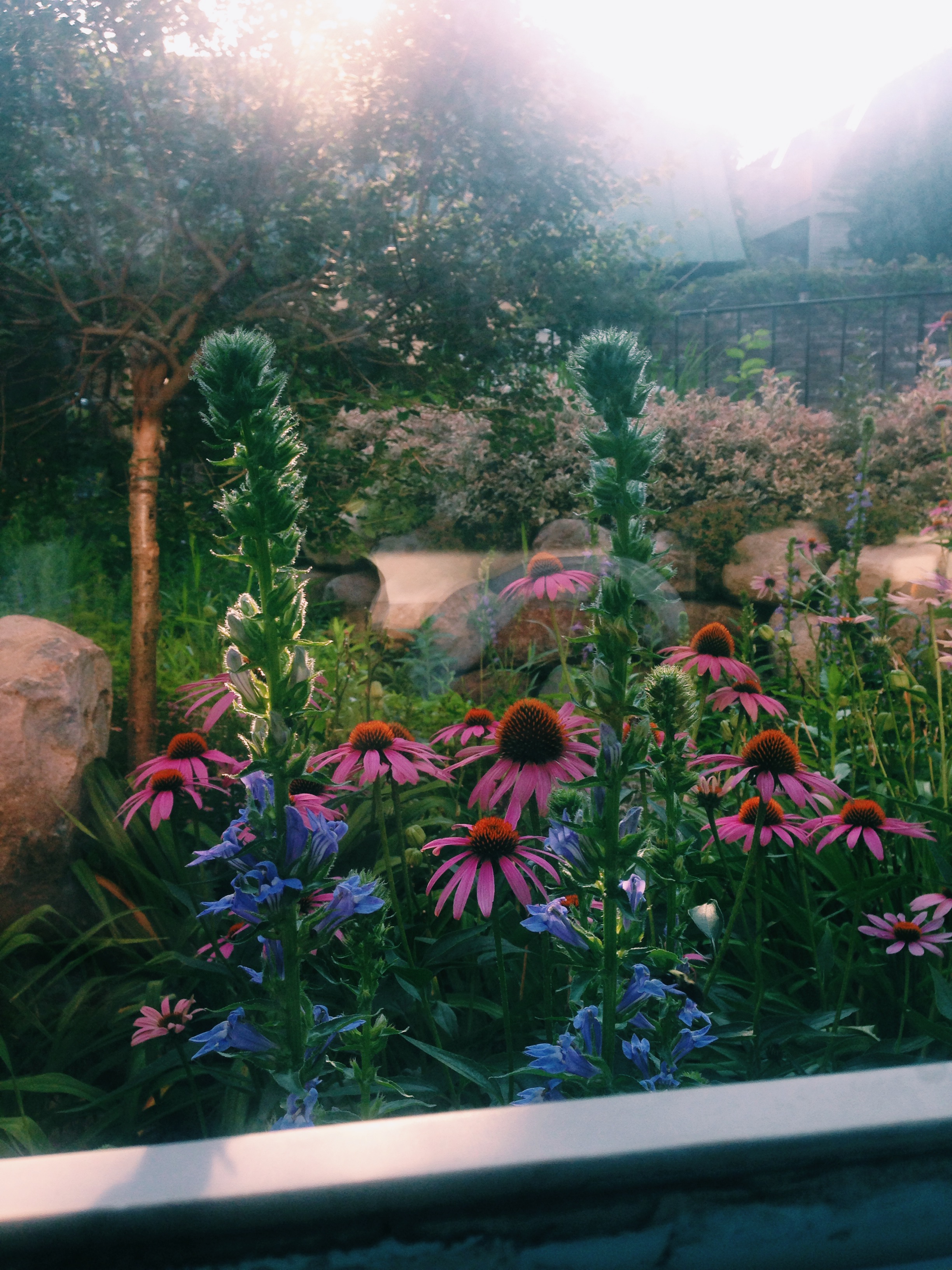 Through a hazy window, I’m watching ginormous bees slurp at swollen zinnias, thinking. Wow. I’m hungry.